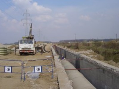 Descrierea proiectului: Intregul proiect a vizat constructia si reabilitarea statiei de tratare a apei potabile si a apeductului de transport apa potabila. Am realizat o gama larga de lucrari, dintre care mentionam: instalarea retelelor tehnice ale statiei de tratare apa potabila (GRP, DN500-DN1600) prin metoda traditionala cu spatura deschisa, constructia unei camera de deversare in raul Arges, executia de drumuri si retele diverse, realizarea a 47,500 mc de terasamente si umpluturi.